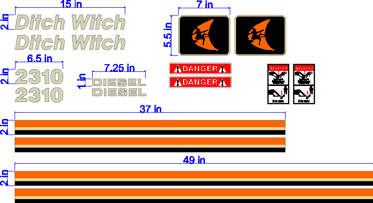 Best Price on Ditch Witch 2310 Decals. Ships within 24 hours, even with customization. Decals are OEM quality.