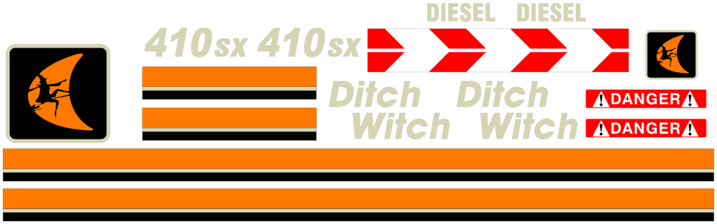Best Price on Ditch Witch 410SX Decals. Ships within 24 hours, even with customization. Decals are OEM quality.