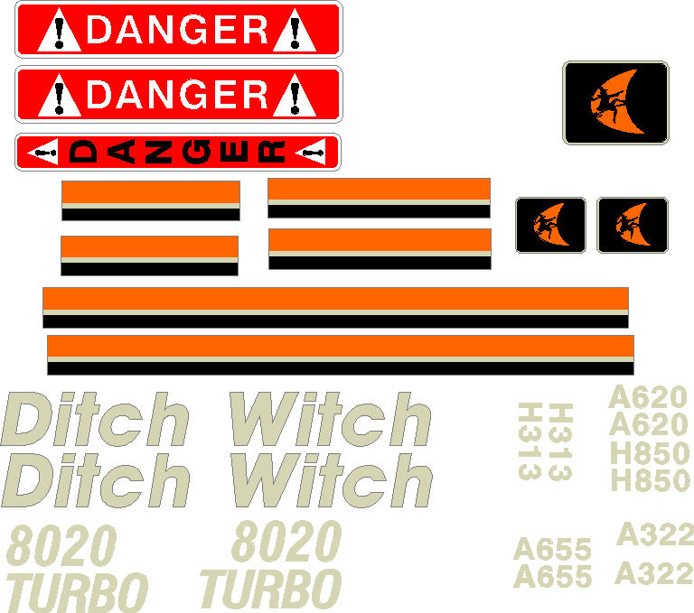 Best Price on Ditch Witch 8020T Decals. Ships within 24 hours, even with customization. Decals are OEM quality.
