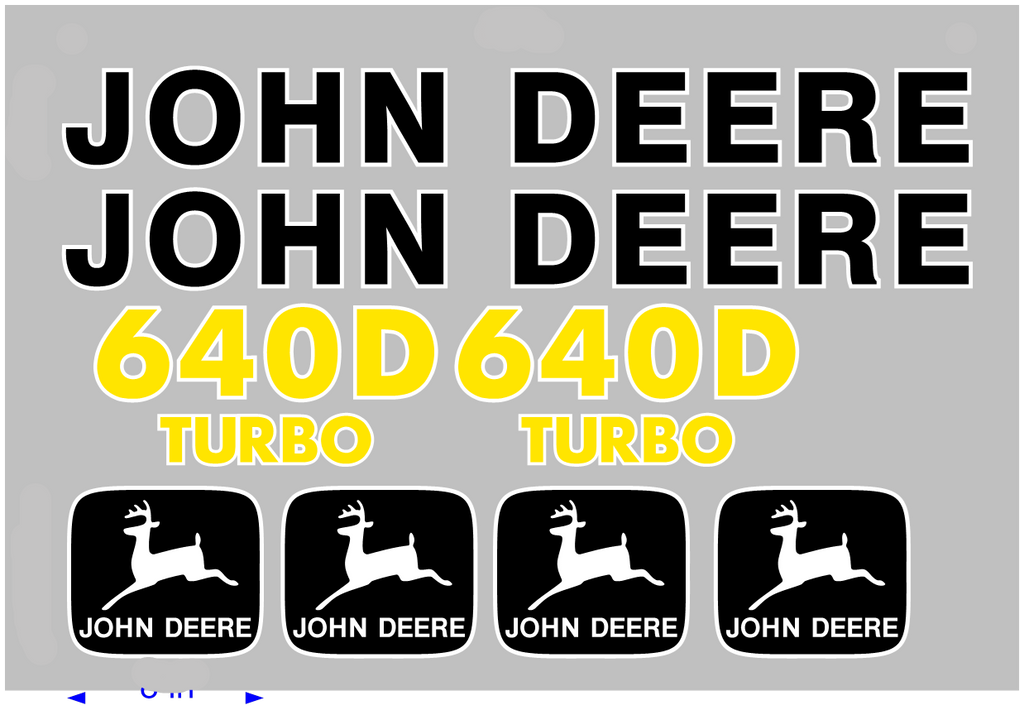Best Price on Deere 640D Decals, Fast Shipment, even with customization. Decals are of OEM quality at the best price and ship within 24 hours.